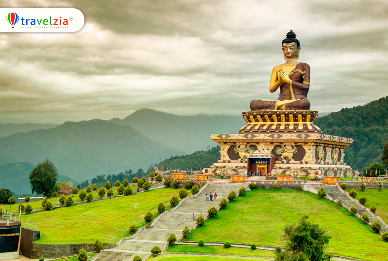 Ravangla is one of the most peaceful destinations in South Sikkim, known for its spiritual atmosphere and scenic beauty. The highlight here is Buddha Park, where a massive statue stands against the backdrop of the Himalayas. The town offers a calm and less crowded alternative to more popular destinations, making it ideal for relaxation and reflection.